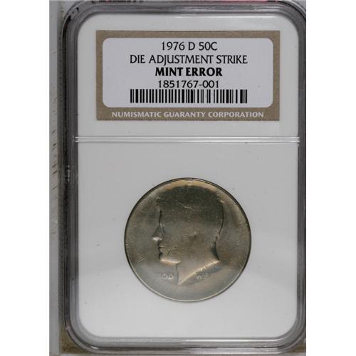 1976-D 50C Clad Bicentennial Kennedy Half--Die Adjustm
