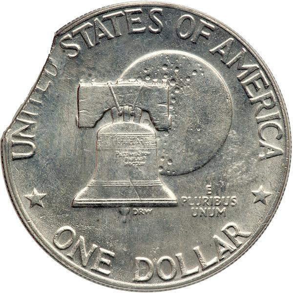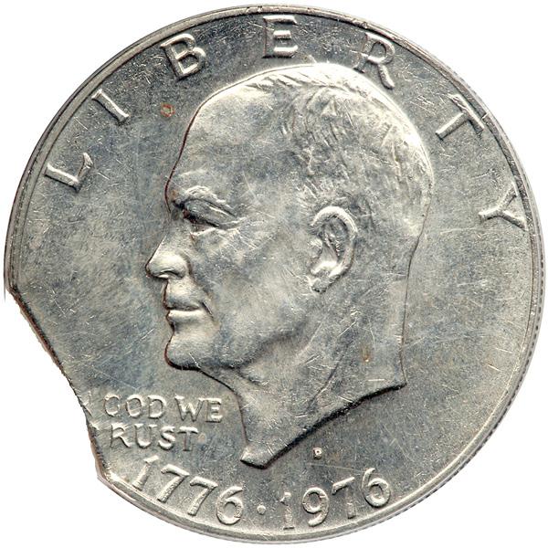 1976-D Eisenhower Dollar. Type 2. PCGS graded MS-63 Mint Error. 6% Clipped Planchet. Unusual Mint Error (PCGS # 7421) .
