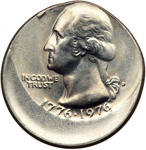1976-D Washington. NGC graded Mint Error MS-65. Struck 20% off center.