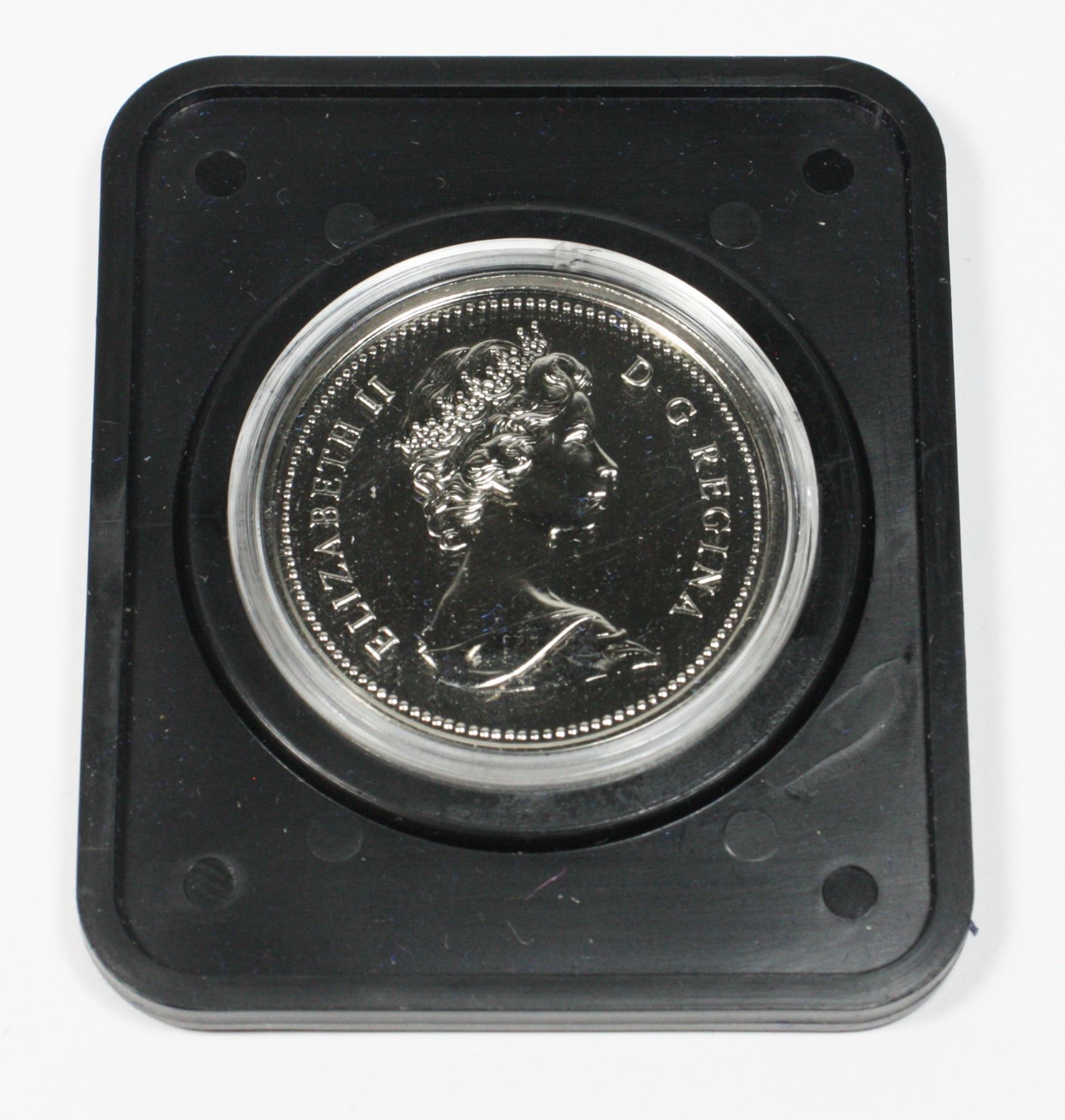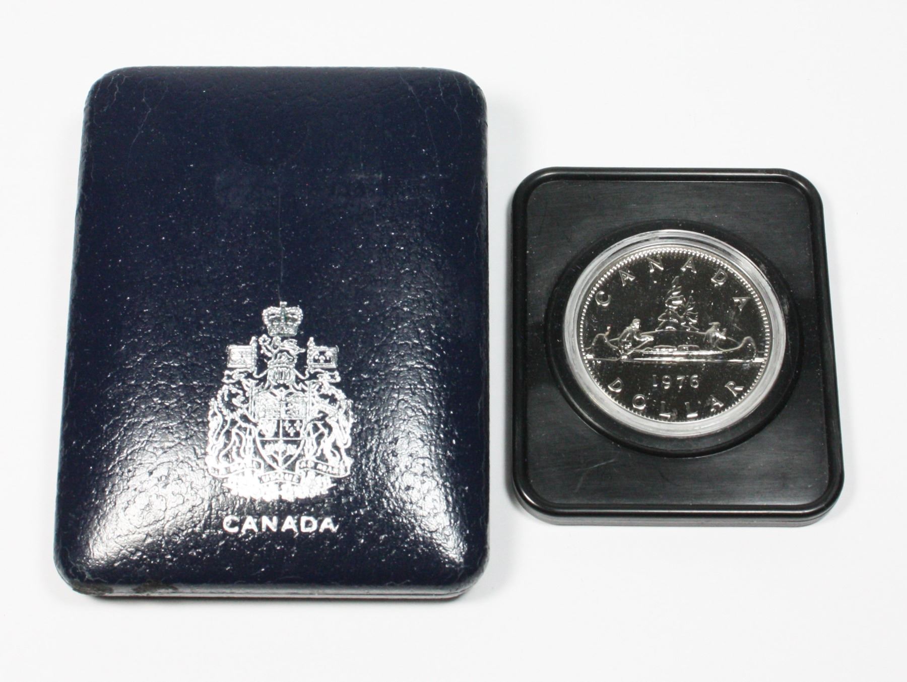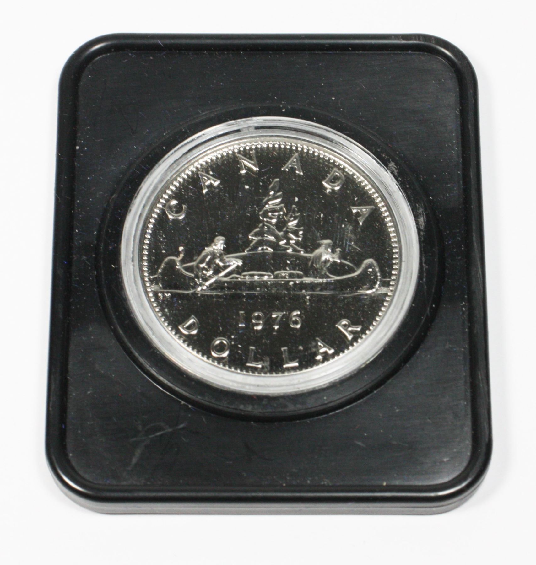 ARMS WITH SPECIAL PURPLE LINING PROOF QUALITY. 1976 Proof Dollar in hard plastic coin holder and clam shell case. Carefully hand-selected, these coins are the best of their kind N.B.U 67-68