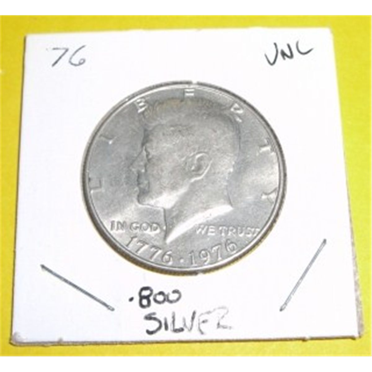 1976 Kennedy Half Dollar ,800 SILVER*UNC GRADE*!! ***Coin & Currency Grades, Conditions & Values are not Safe Deposit Coins Responsibilty. Grades, Conditions & Values are determined by Consigner(s) & Buyers***