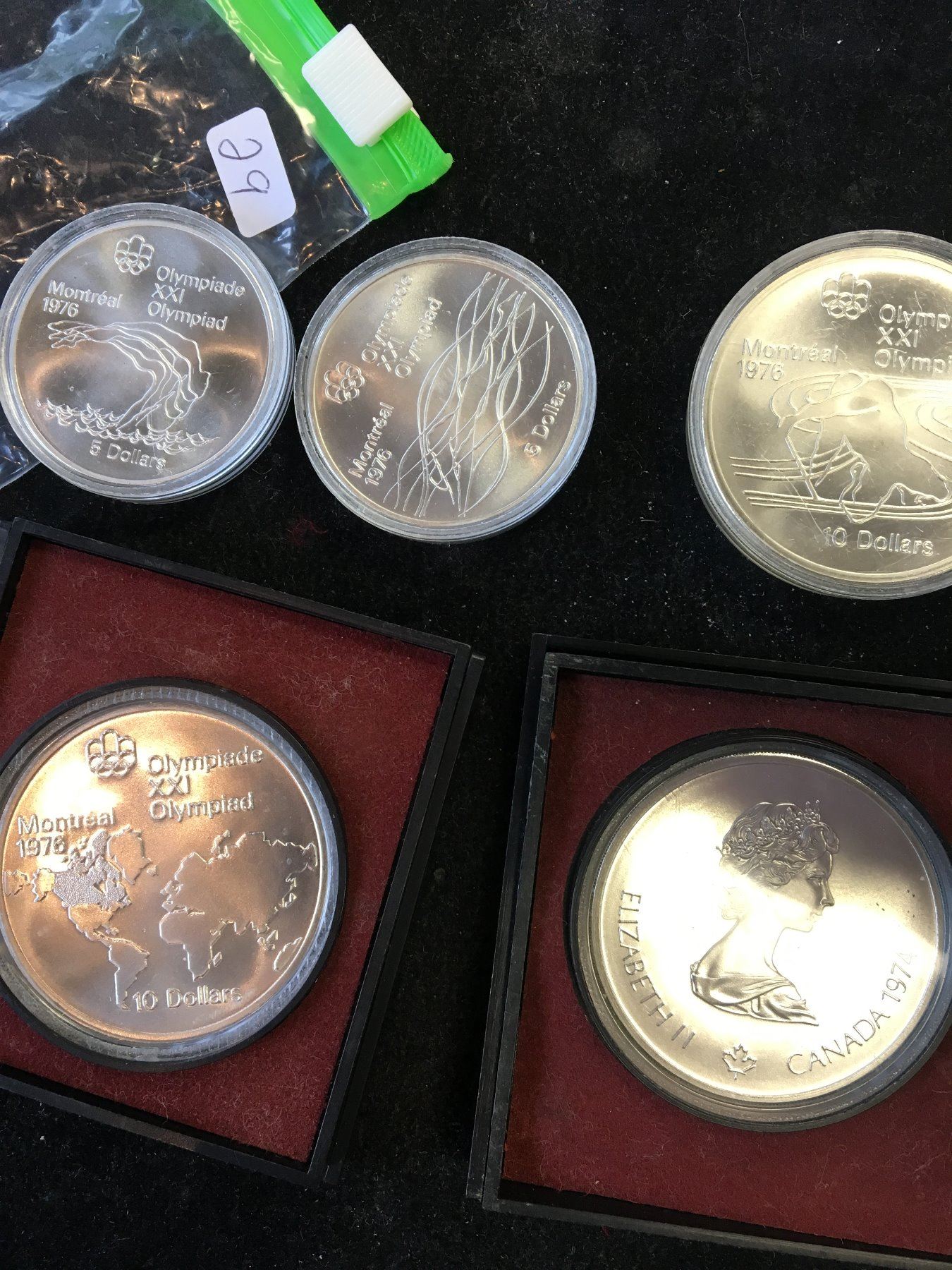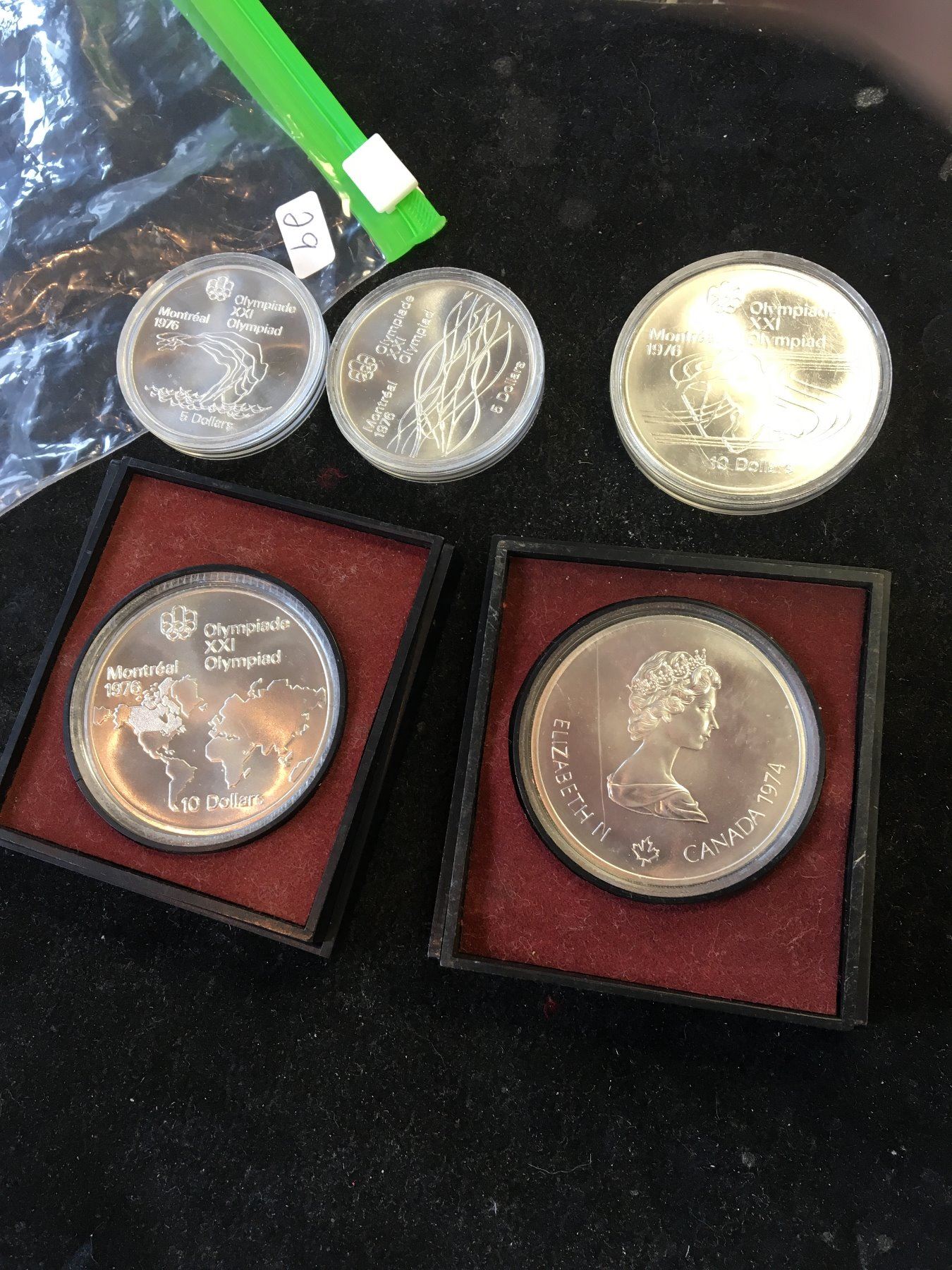 NICE LOT OF 3X $10 SILVER OLYMPIC COINS AND 2X $5 OLYMPIC COINS.5.6oz SILVER