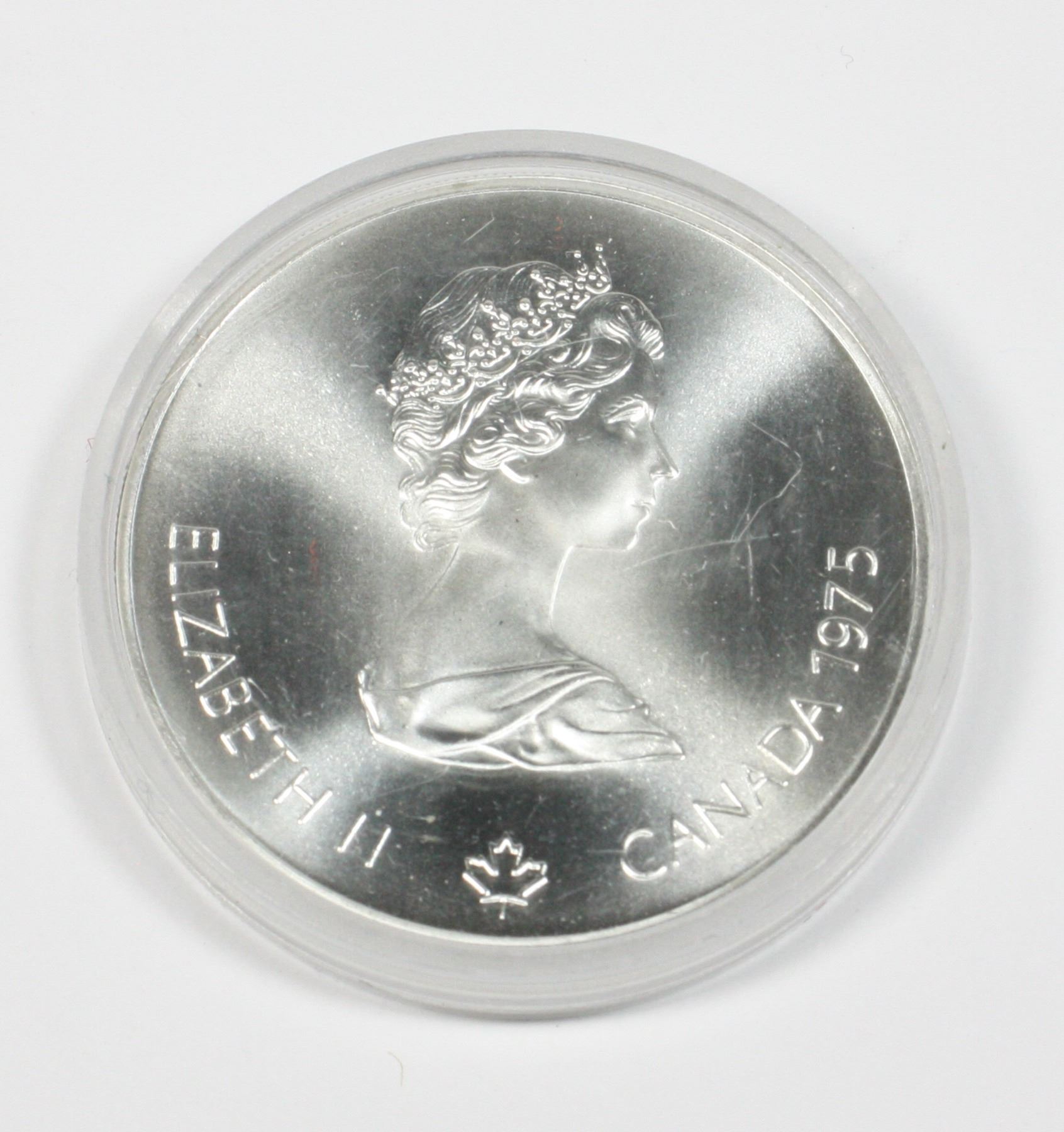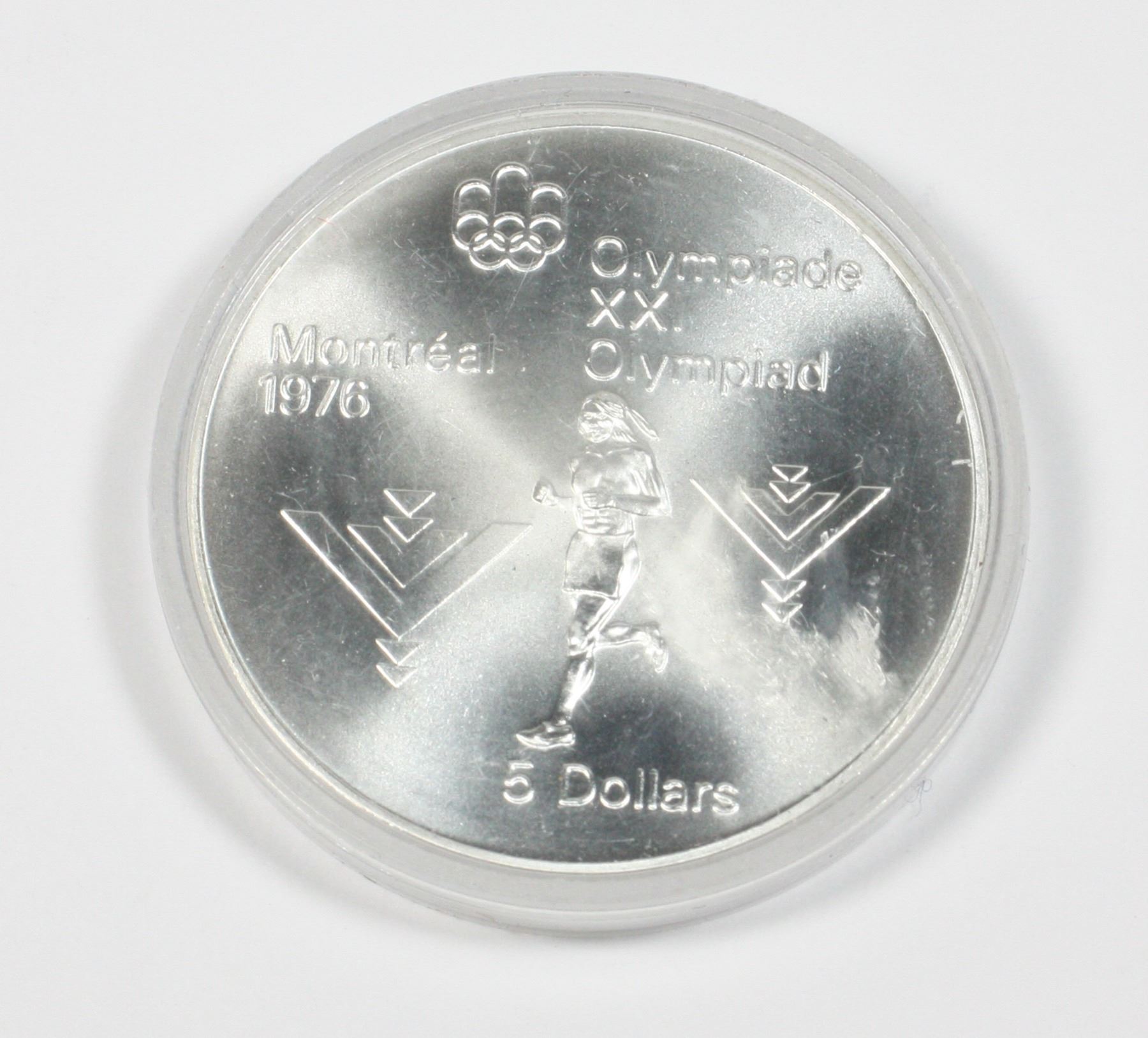 MARATHON 92.5 % SILVER. 1976 Montreal Olympic $5.00 Marathon Silver coin P.L. 67 92.5 % SILVER