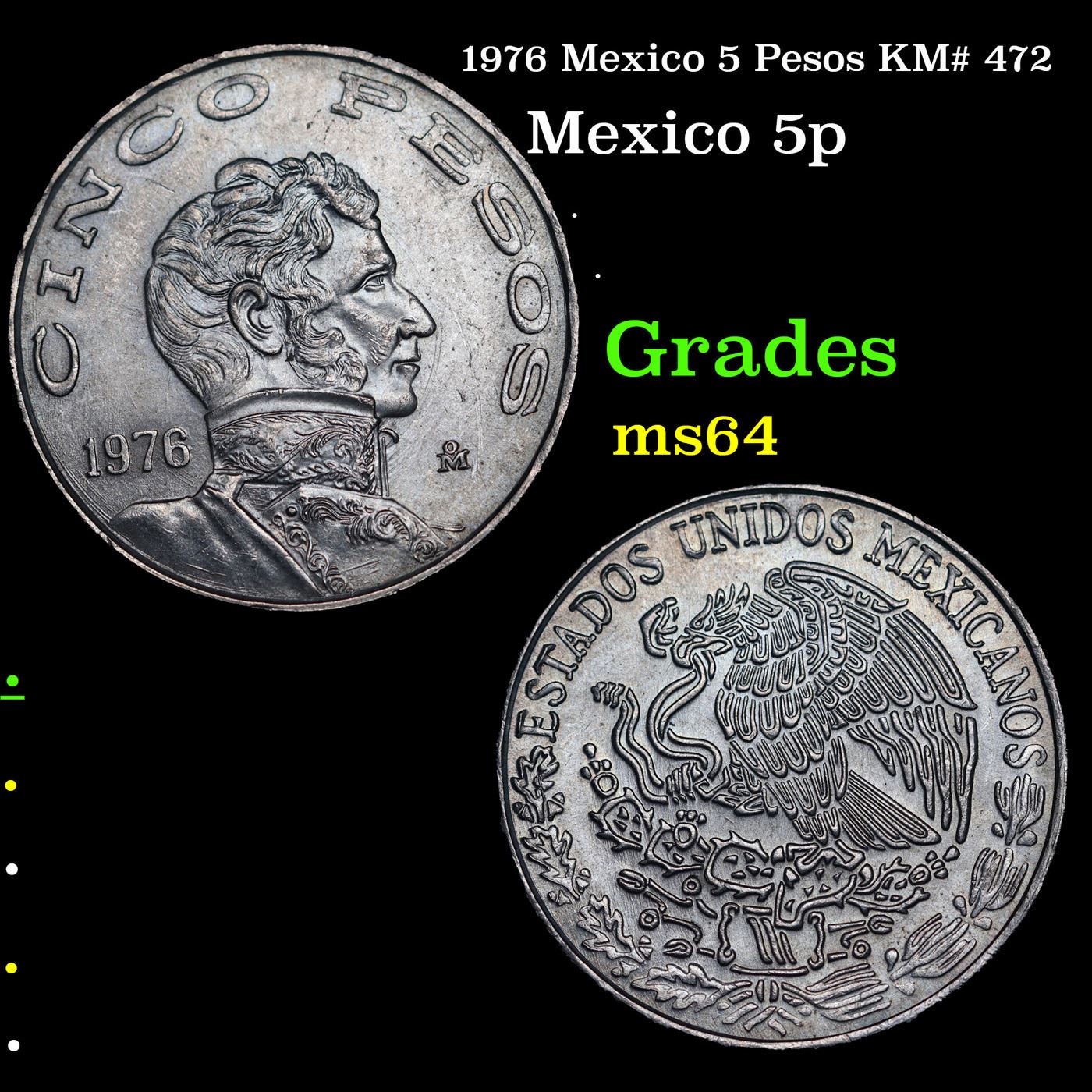 1976 Mexico 5 Pesos KM# 472 Grades Choice Unc.