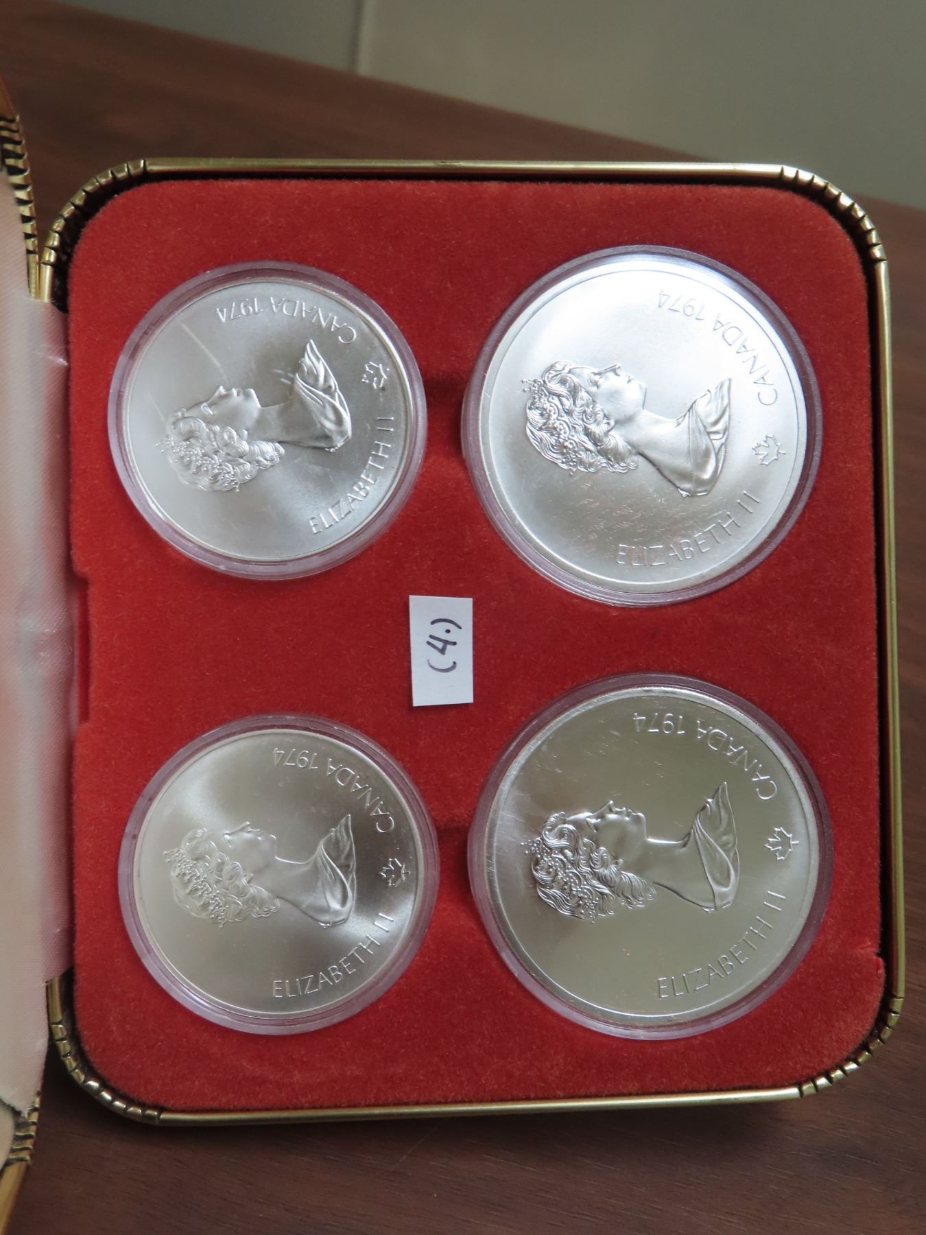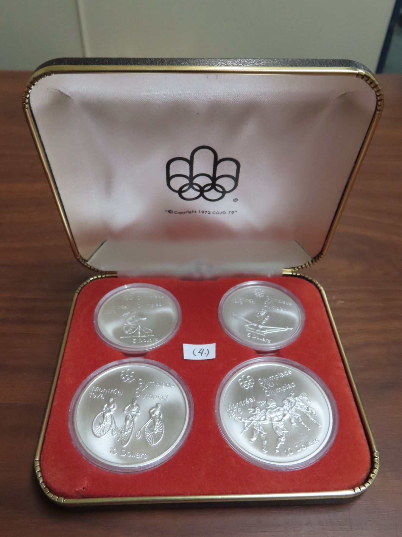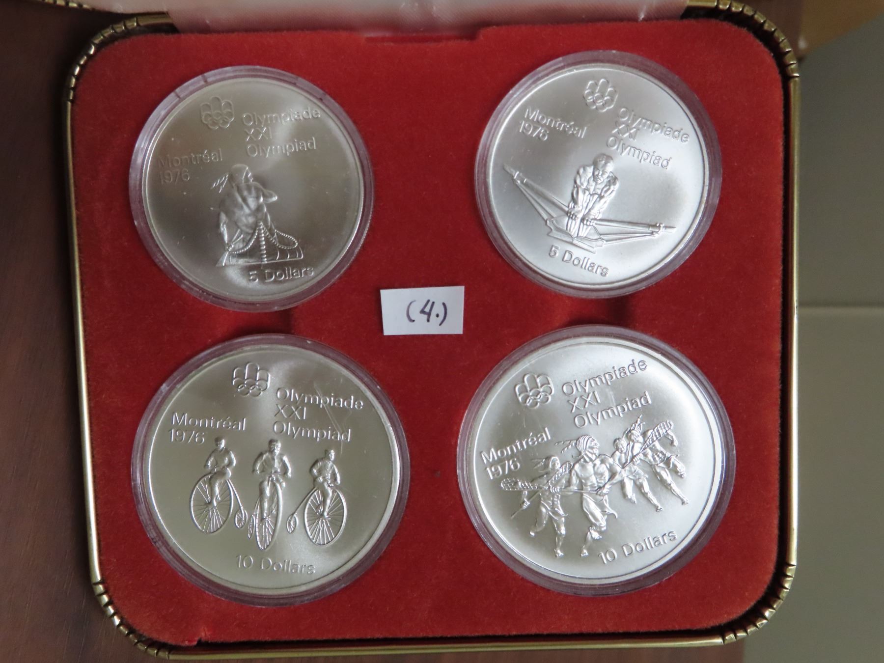 1976 Montreal olympics sterling silver 4-coin set ; $5 Canoeing and Rowing ; $10 cycling and Lacrosse