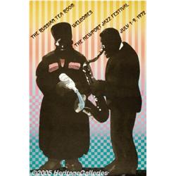 <B>New Orleans Jazz Heritage Festival (Laredo Printing Pro Creations Publishing, 1976)</B></I> Music Poster (15" X 23"). Signed Artist's Proof. Since its inception in 1975 the New Orleans Jazz Festival has issued a commissioned poster to mark the event. In its second year the poster was designed by Louisiana folk artist Maria Laredo. The series of posters, which continue to be issued to this day, have become quite collectible and early examples rarely show at auction. A large number of 23" X 35" posters were printed for standard promotional use. In 1976 there was also a limited edition serigraph in an artist signed edition of 1,000 numbered prints plus an unsigned edition of 1,000 numbered prints. Both these editions measure 23" X 35" inches. This particular example measures 15" X 23" inches and is inscribed with the following handwritten note: "Hope you like the print. It is the last of a series of hand done commemorating festival posters. Have a good Christmas! Maria Laredo." When the New Orleans Heritage Jazz Festival was contacted to ask about the nature of this print, we were told that a small number of artist's proofs were hand-pulled and were given to the artist "to sell or do what they wanted with them." This is a proof from the earliest stage of the printing process since it is the same size and format as the original artwork. The image is of Fats Houston, the definitive grand marshal of the Eureka marching jazz band. With his signature derby hat in one hand and woven straw fan in the other, he was the embodiment of all the dignity and style that New Orleans jazz could and did attain. Very Fine- condition.