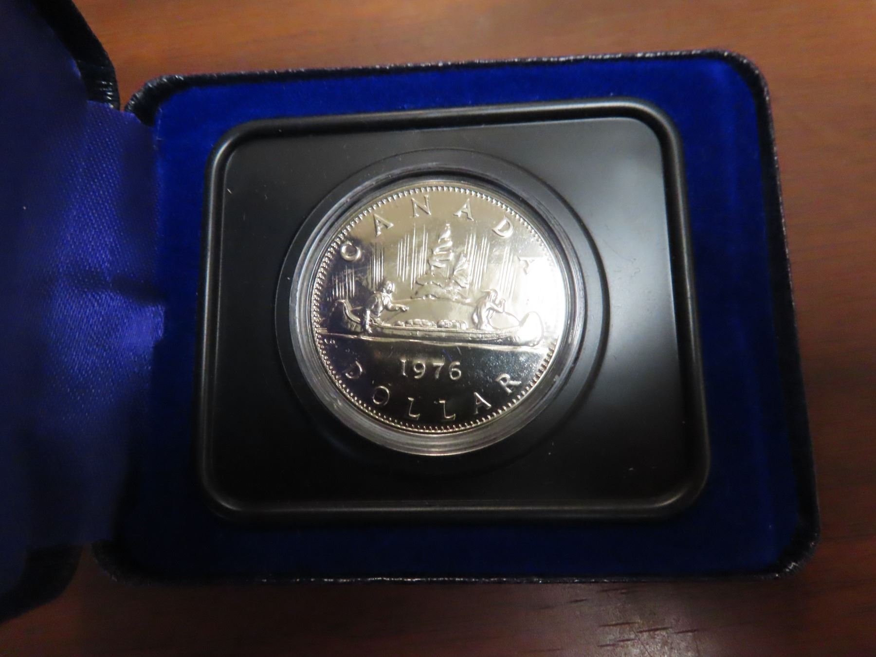 1976 Nickel Dollar. Specimen. Housed in its original Royal Canadian Mint blue clamshell case of issue. Bright White.