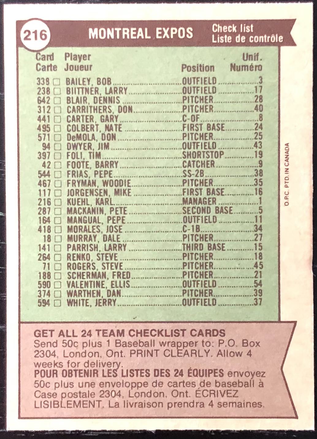 Card #216 MLB, baseball, vintage, OPC, hall of fame