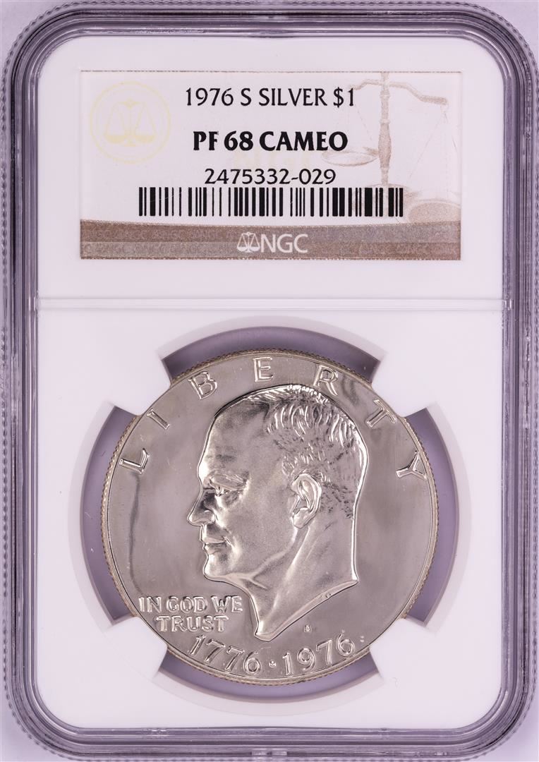 One 1976-S $1 Proof Eisenhower Silver Dollar Coin NGC PF68 Cameo. NGC Certified.