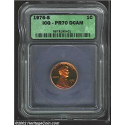 1976-S 1C PR70 Deep Cameo ICG. The dramatic contrast of this Superb Bicentennial issue is further en