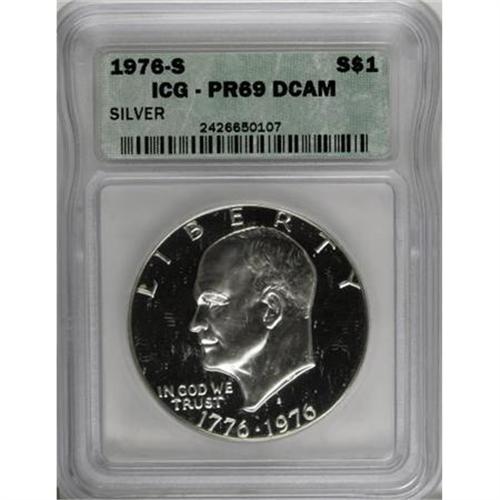 <B>1976-S 25C Silver PR69 Deep Cameo ICG; 1976-S Silver Kennedy Half Dollar PR69 Deep Cameo ICG </B></I>and a <B>1976-S Silver Eisenhower Dollar PR69 Deep Cameo ICG.</B></I><BR><BR><b>Shipping:</b> Coins & Currency (<a target="_blank" href="http://www.heritageauctions.com/common/shipping.php">view shipping information</a>)