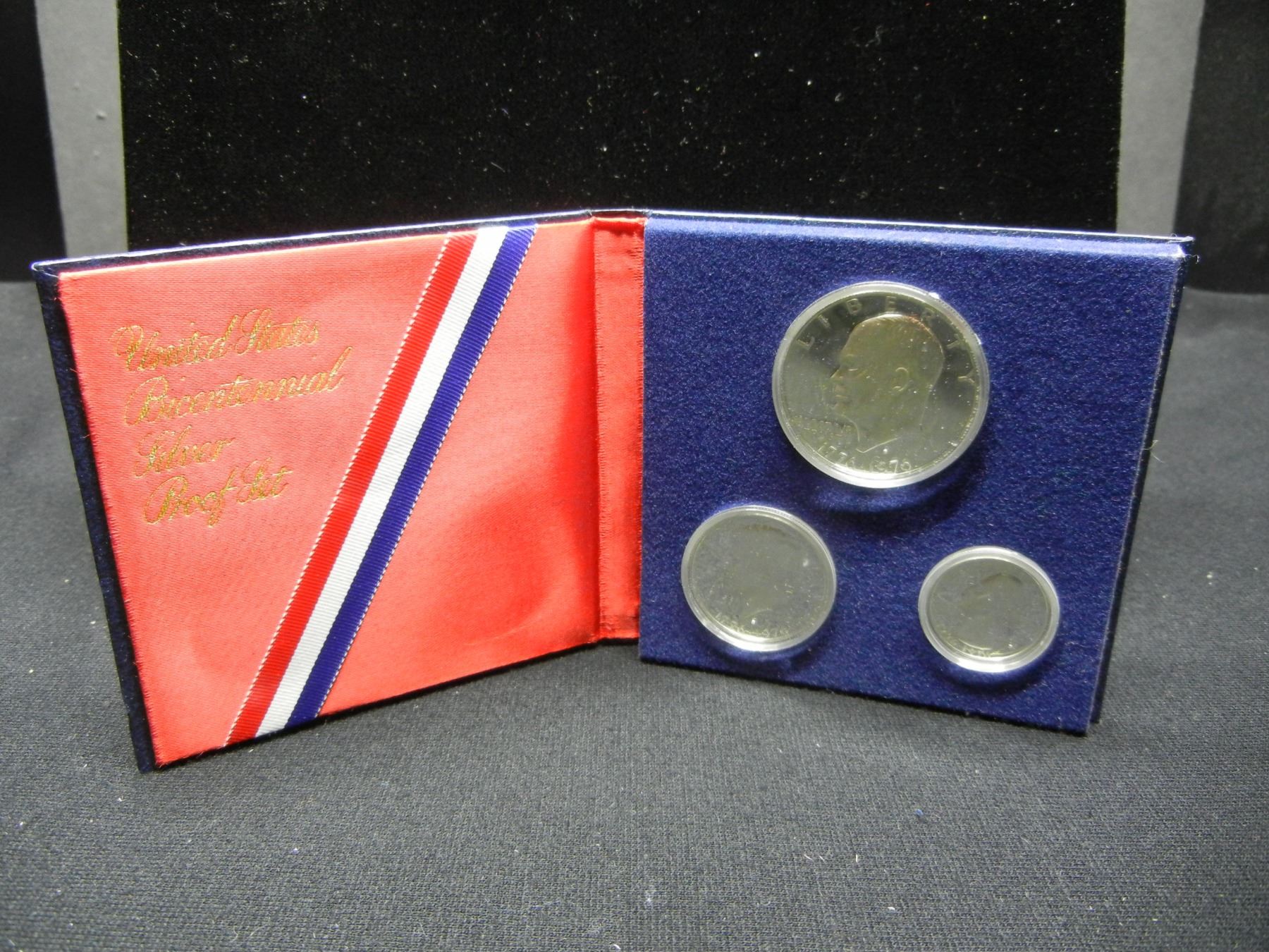 1976-S (3) Piece Bicentennial Proof Set: Ike, Washington, and Kennedy.