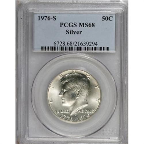 <B>1976-S 50C Silver MS68 PCGS.</B></I> PCGS Population (199/1). NGC Census: (10/0). Mintage: 11,000,000. Numismedia Wsl. Price for NGC/PCGS coin in MS68: $225. (#6728)<BR><BR><B>Coin Engraver:</B> Gilroy Roberts and Frank Gasparro<BR><BR><b>Shipping:</b> Coins & Currency (<a target="_blank" href="http://www.heritageauctions.com/common/shipping.php">view shipping information</a>)