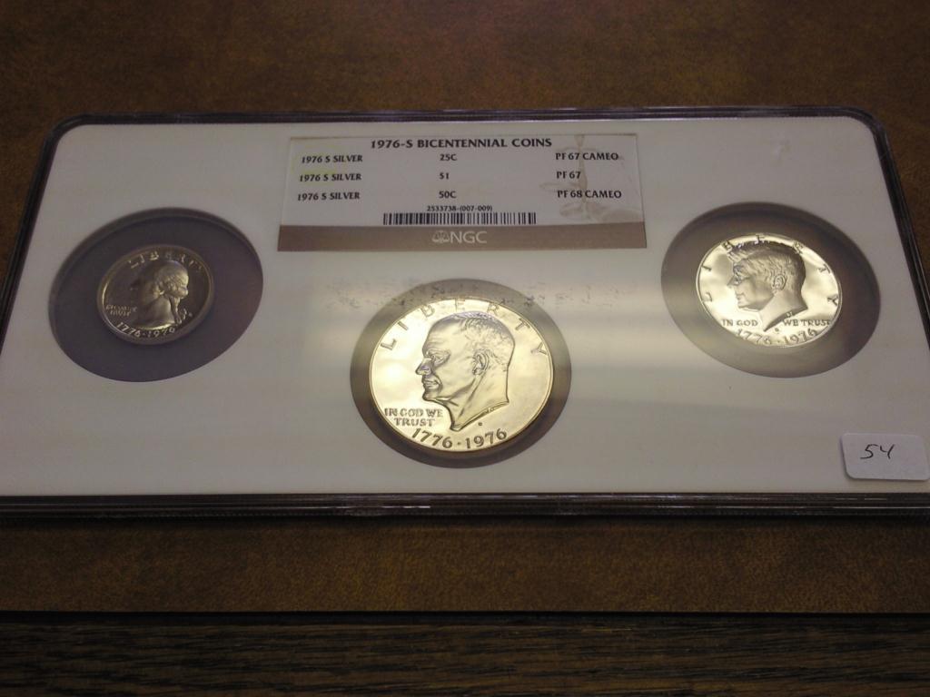MULTI COIN HOLDER, QUARTER IS PF67 CAMEO, HALF IS PF68 CAMEO AND DOLLAR IS PF67