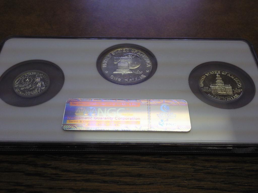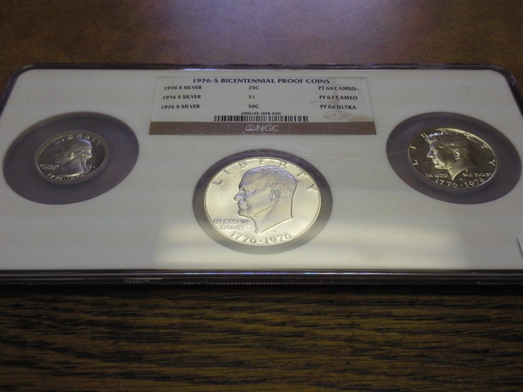 MULTI COIN HOLDER, 25 CENT PF66 CAMEO, 50 CENT PF66 ULTRA & THE DOLLAR IS PF67 CAMEO