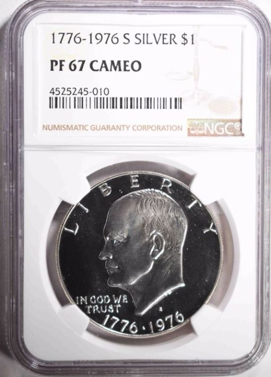1976-S SILVER IKE DOLLAR, NGC PF67 CAMEO ESTIMAT: $110-$120