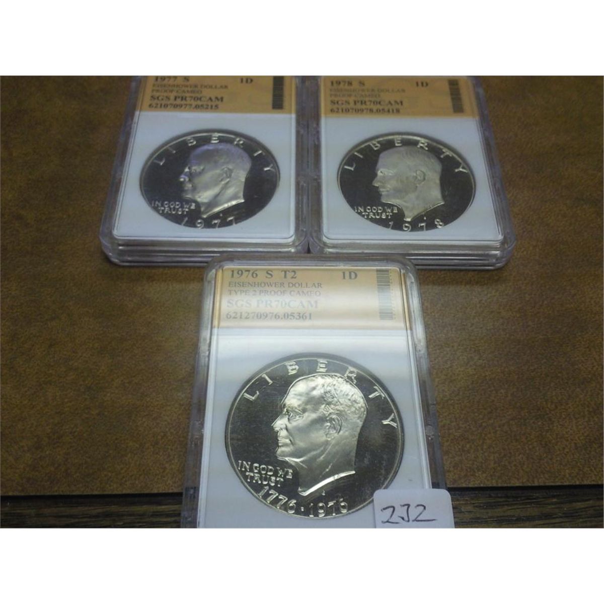 1976-S T2, 77-S & 78-S IKE DOLLARS SGS PR70 CAM