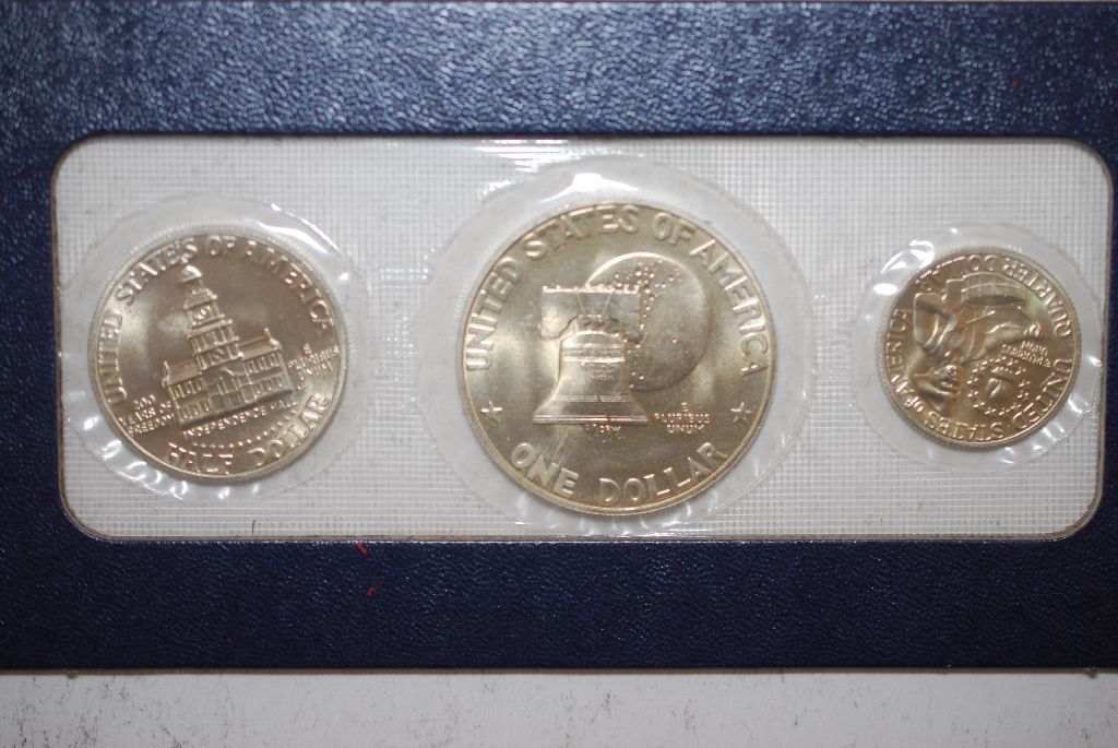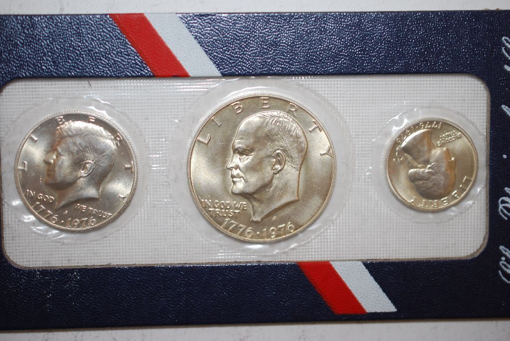 1976-S US Bicentennial Three-Coin Silver Set; 40% Silver; UNC; Eisenhower, Kennedy & Washington; EST. $25-30