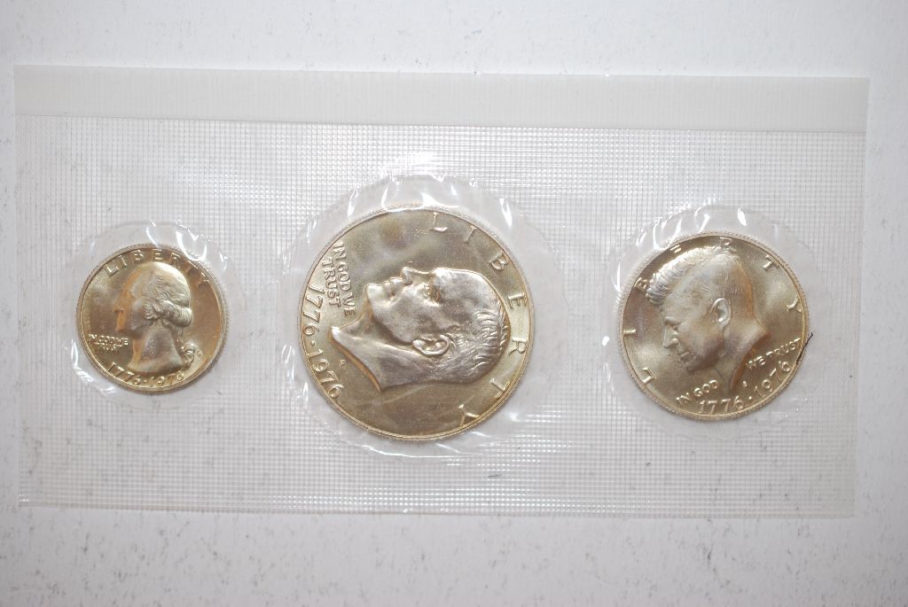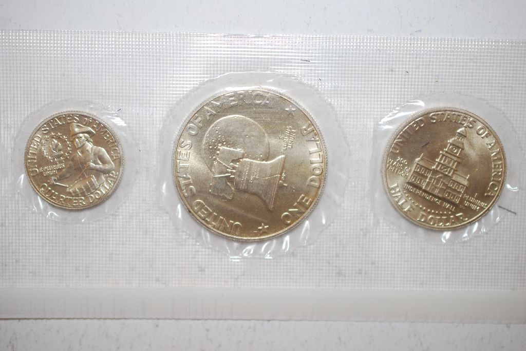 1976-S US Bicentennial Three-Coin Silver Set; 40% Silver; UNC; Eisenhower, Kennedy & Washington; EST. $25-30