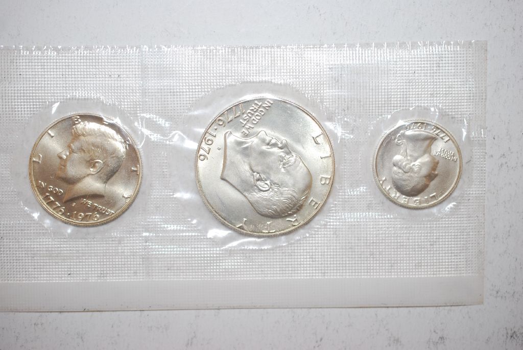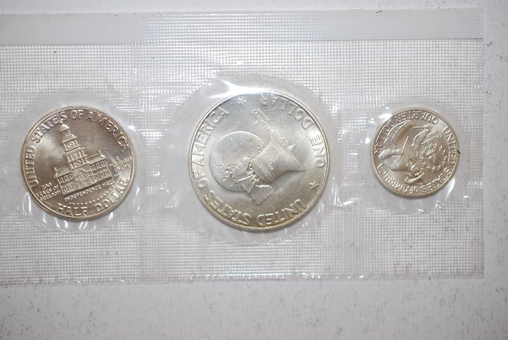 1976-S US Bicentennial Three-Coin Silver Set; 40% Silver; UNC; Eisenhower, Kennedy & Washington; EST. $25-30