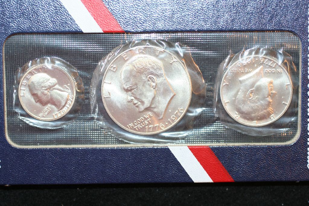 1976-S US Mint Bicentennial 3-Coin Set; 40% Silver, UNC