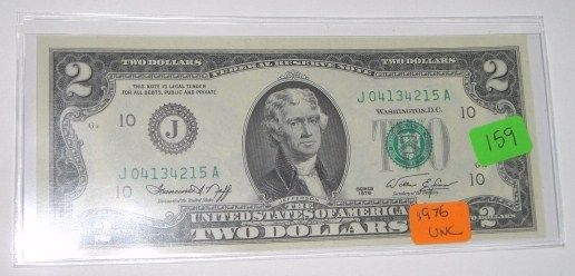 1976 SERIES $2 BILL *RARE UNC HIGH GRADE* SERIAL # J04134215A!! ***Coin, Currency & All Items Listed in this auction - Grades, Conditions and Values are not Safe Deposit Coins LLC Responsibilty. Grades, Condition and Values are determined by Consigner(s) & Buyers ONLY***