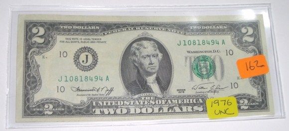 1976 SERIES $2 BILL *RARE UNC HIGH GRADE* SERIAL # J10818494A!! ***Coin, Currency & All Items Listed in this auction - Grades, Conditions and Values are not Safe Deposit Coins LLC Responsibilty. Grades, Condition and Values are determined by Consigner(s) & Buyers ONLY***