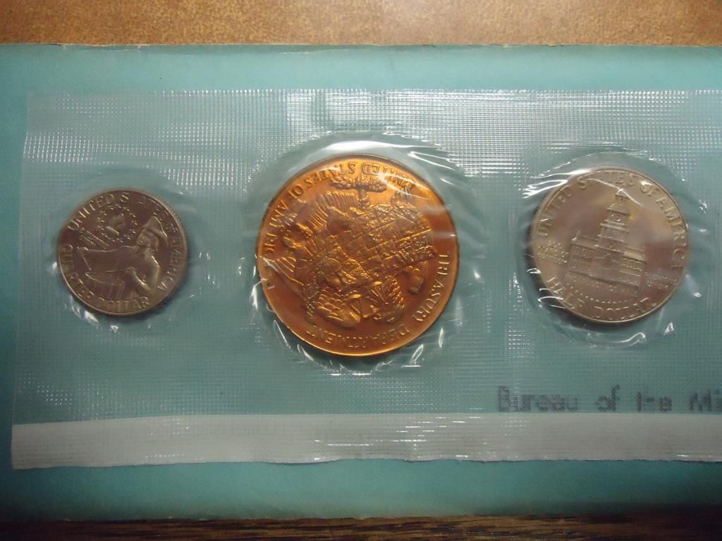 1976 BICENTENNIAL QUARTER AND HALF DOLLAR WITH SAN FRANCISCO MINT MEDAL, ORIGINAL US MINT PACKAGING.