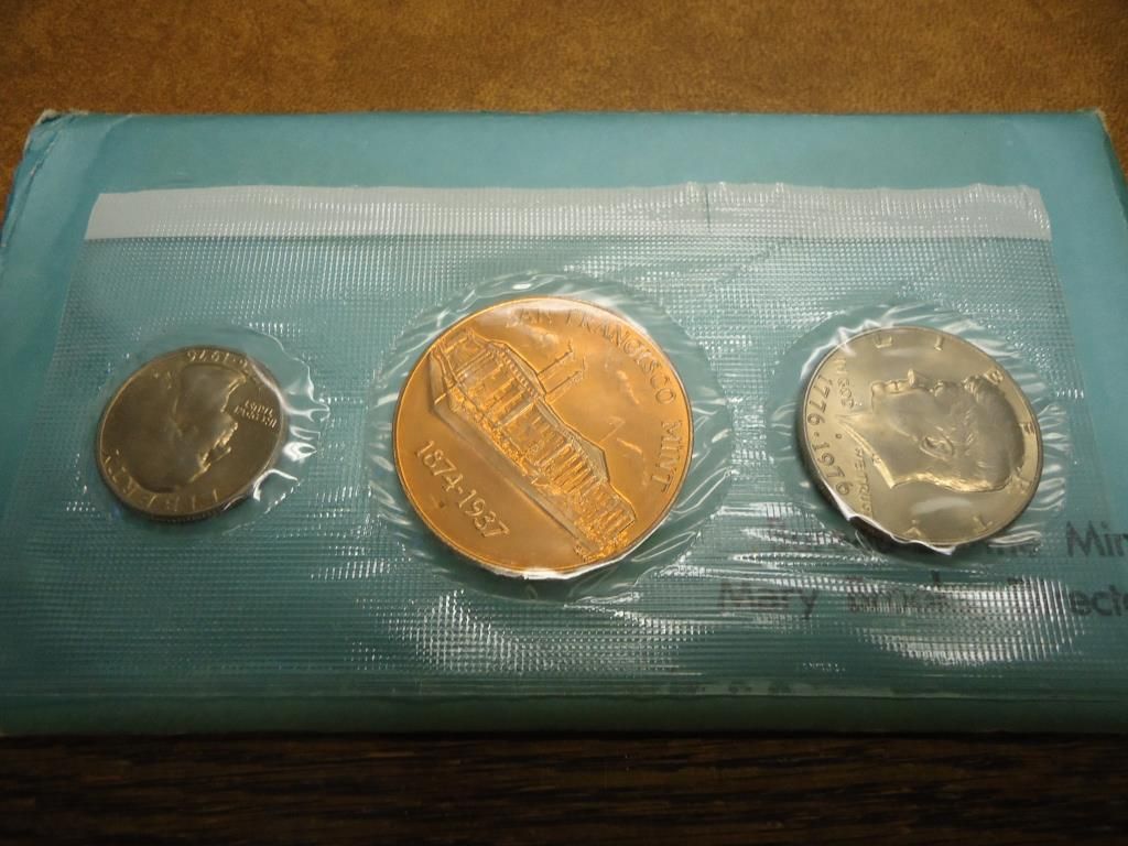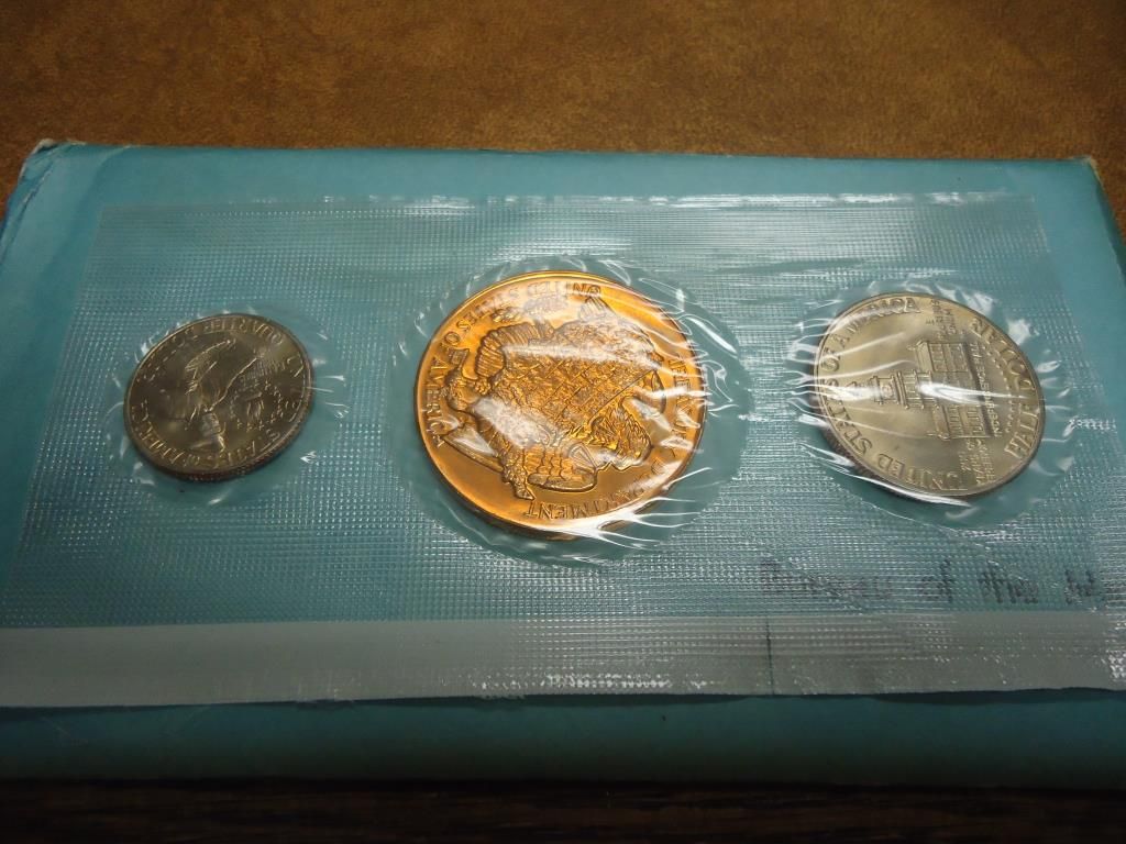 1976 BICENTENNIAL QUARTER AND HALF DOLLAR WITH SAN FRANCISCO MINT MEDAL, ORIGINAL US MINT PACKAGING.