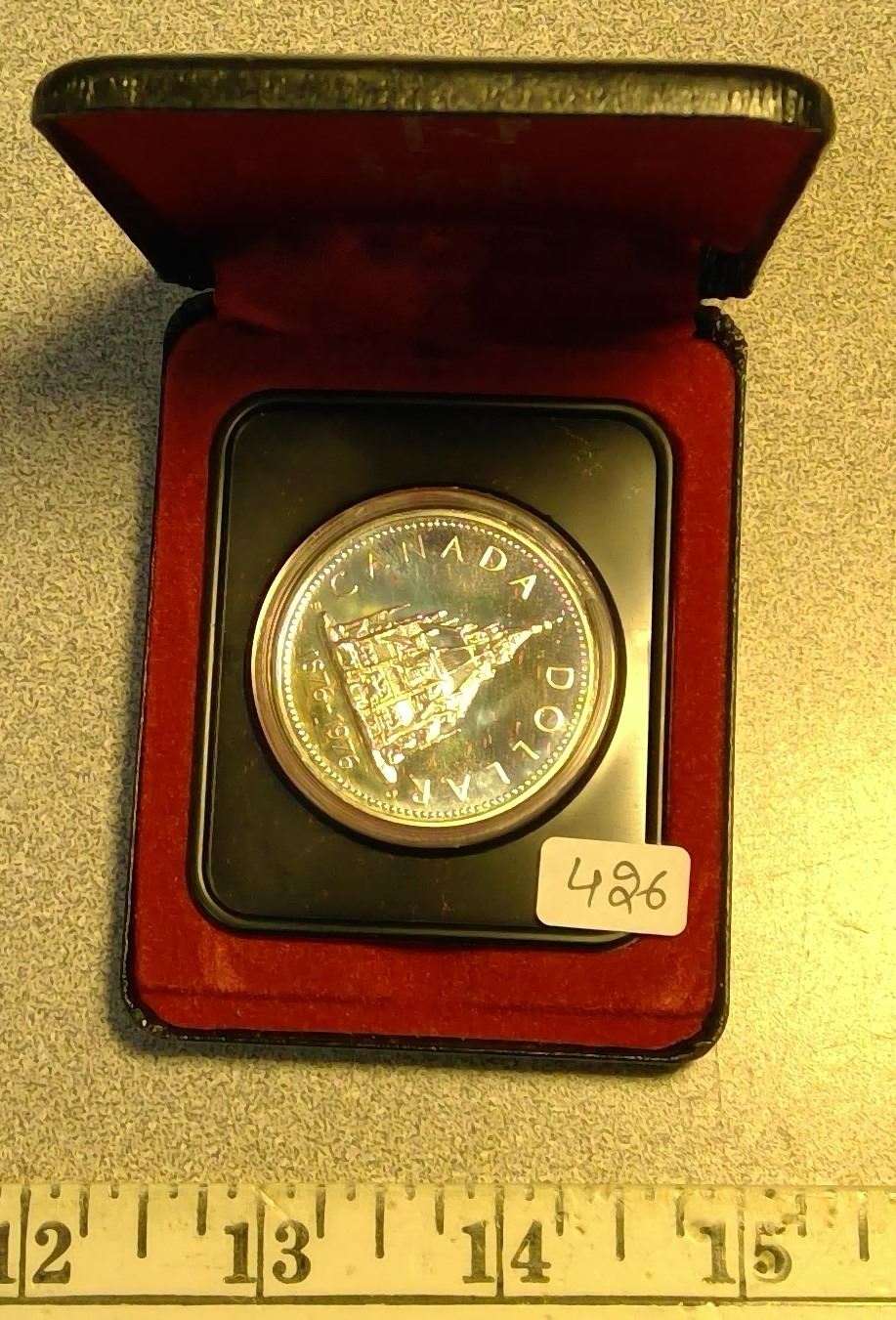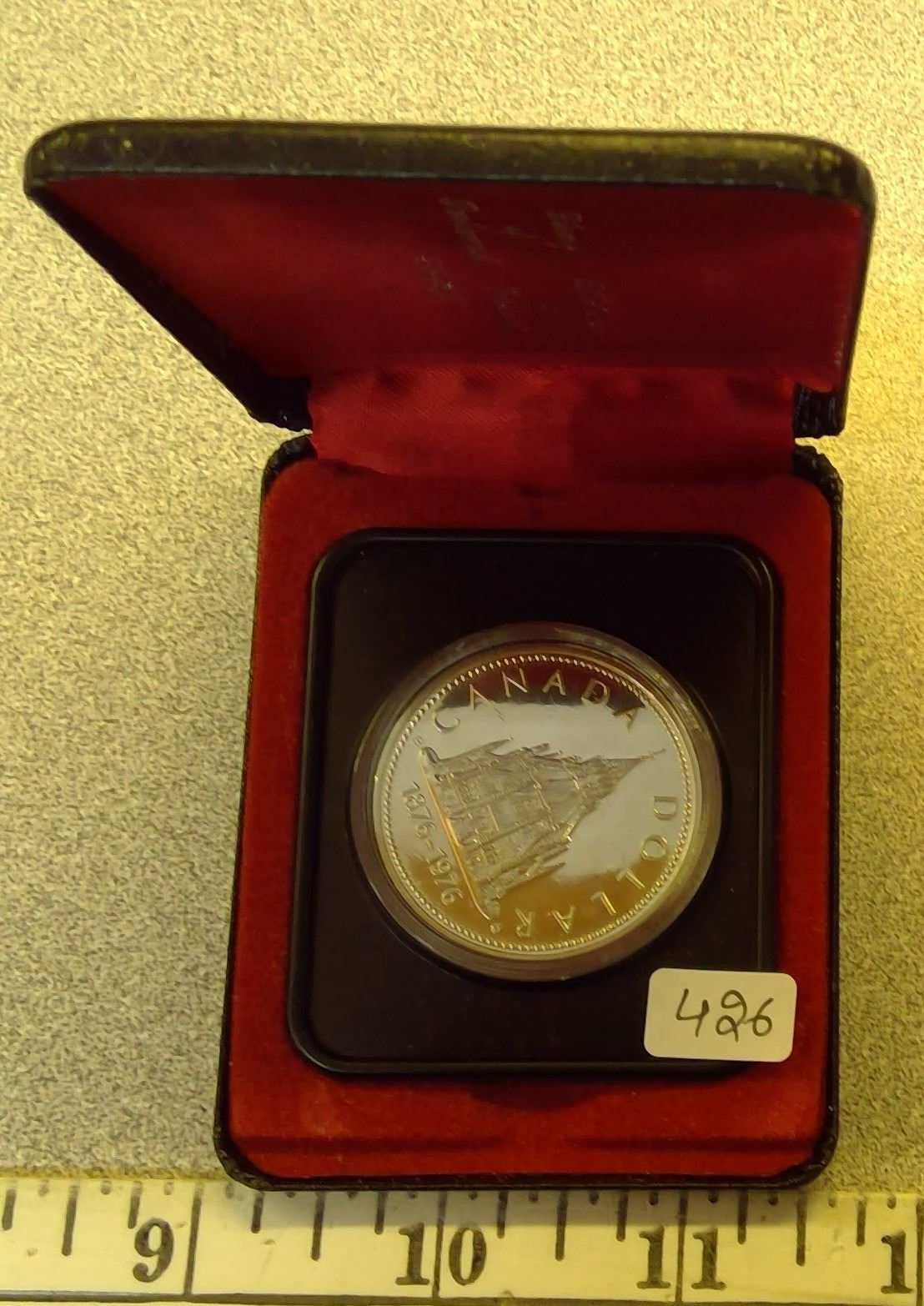 1976 Silver Dollar. Specimen. Commemorates the Library of Parliament. Housed in its original black clamshell case of issue.