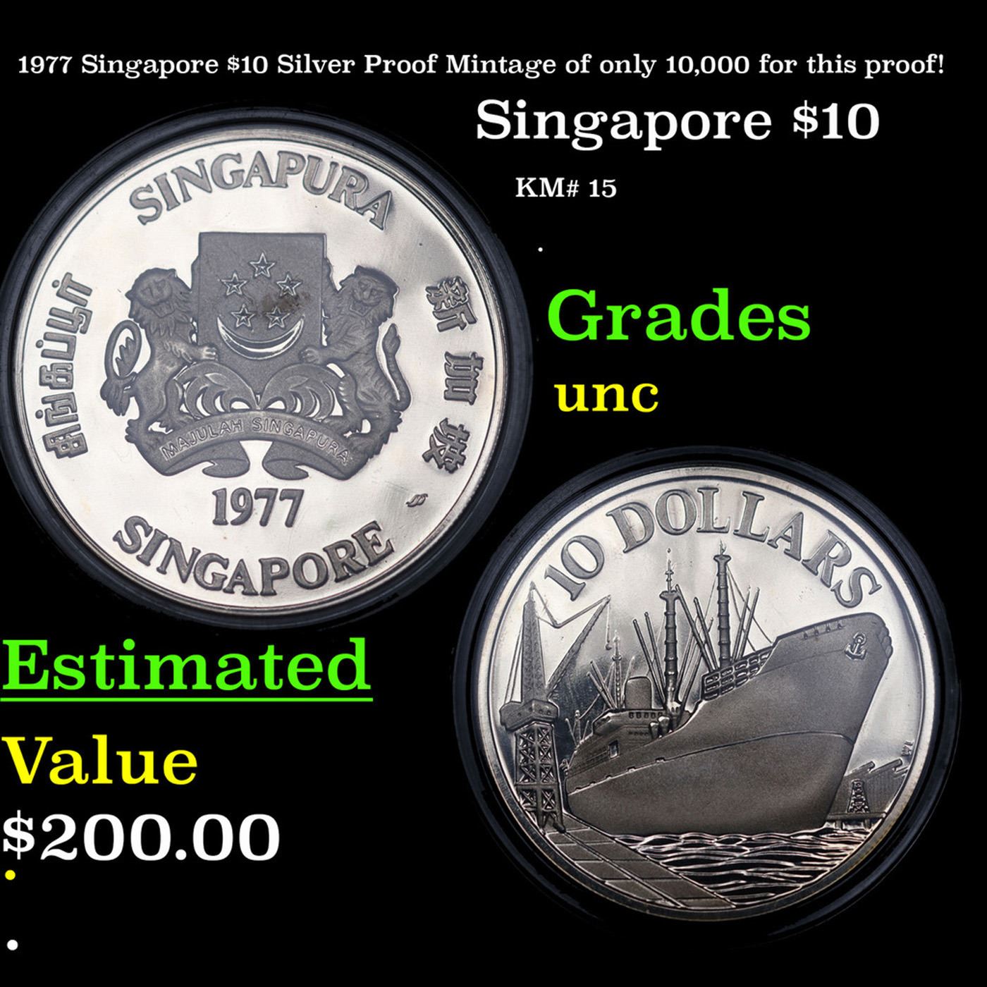 1976 Singapore $10 Silver Proof Mintage of only 10,000 for this proof! Grades GEM++ Proof Deep Cameo