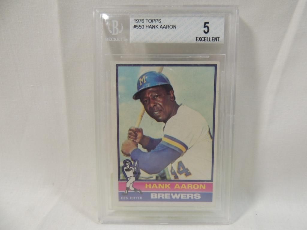 1976 TOPPS HANK AARON #550 GRADED 5 EXCELLENT BY BECKETT. BASEBALL PLAYER CARD. BASEBALL TRADING CARDS. VINTAGE CARDS. AS SHOWN. SEE PHOTO FOR MORE DETAILS.