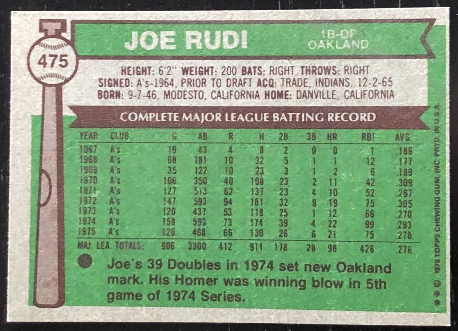 Card #475 MLB, baseball, vintage