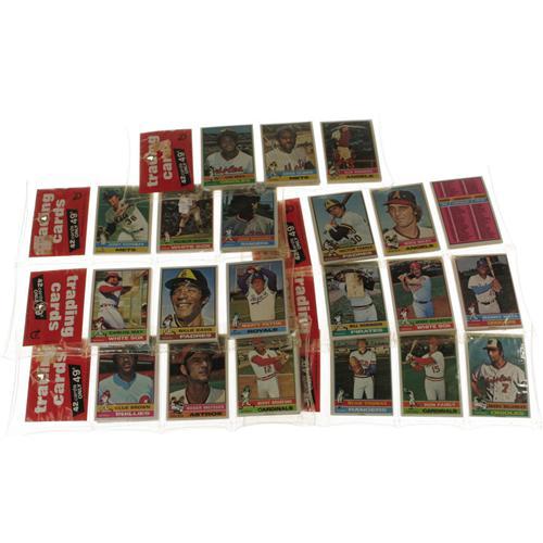 <B>1976 Topps Baseball Rack Packs Group Lof of 7.</B></I> Nearly 300 cards in unopened pristine state are offered in the seven rack packs, each containing 42 cards from the 1976 Topps baseball issue. Cards for potential submission to grading include #1 Hank Aaron RB, 19 George Brett, 98 Dennis Eckersley (R), 240 Pete Rose, 330 Nolan Ryan, 345 Babe Ruth All Time OF, 550 Hank Aaron.<BR><BR><b>Shipping:</b> Sportscard (<a target="_blank" href="http://www.heritageauctions.com/common/shipping.php">view shipping information</a>)