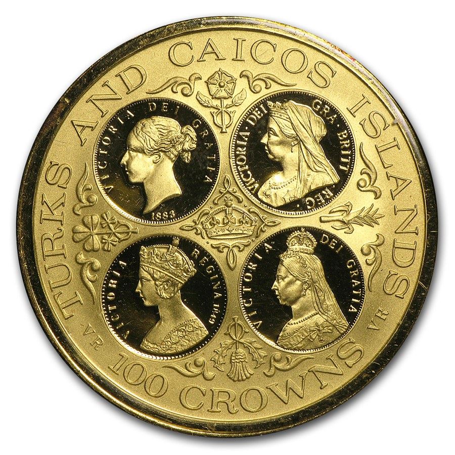 1976 Turks & Caicos Gold 100 Crowns Victoria Proof