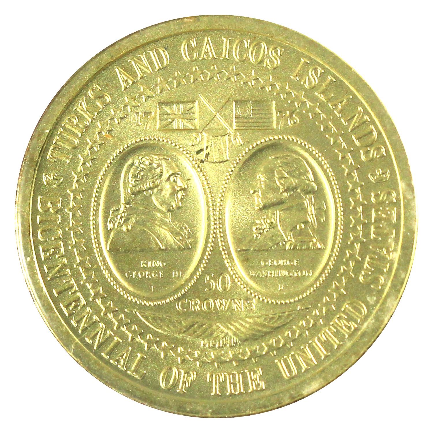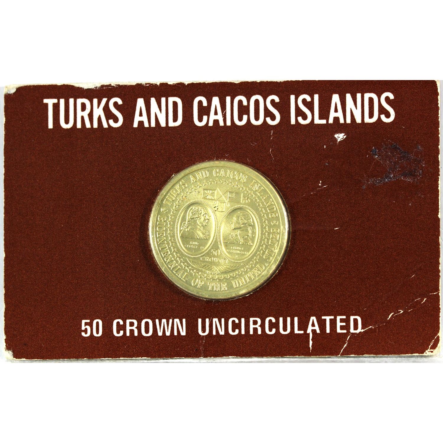 1976 Turks and Caicos 50 Crown Uncirculated .500 Gold Coin. Contains 0.1oz of fine gold.