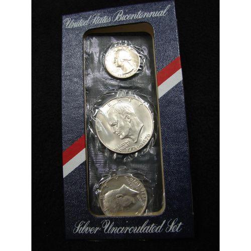 1976 U.S. BICENTENNIAL SILVER MINT SET. Consists of three coins with original envelope.