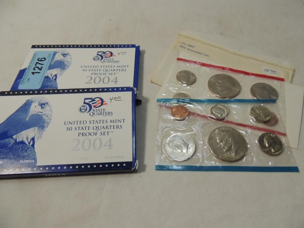 2004 UNITED STATES MINT 5 QUARTERS PROOF SET FLORIDA, TEXAS, IOWA, WISCONSIN, MICHIGAN. 1976 UNCIRCULATED COINS COIN COLLECTIBLE. CURRANCY AS SHOWN. SEE PHOTO FOR MORE DETAILS.