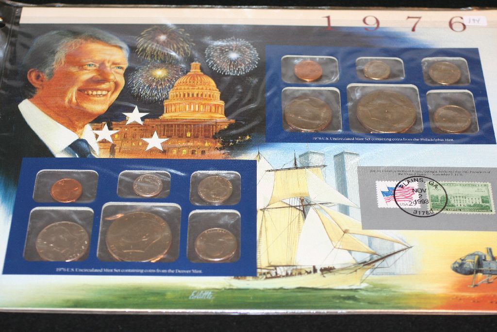 1976 US Mint Coin Set Commerating Jimmy Carter Elected President; P,D&S Mints, UNC W/Postal Stamp Da