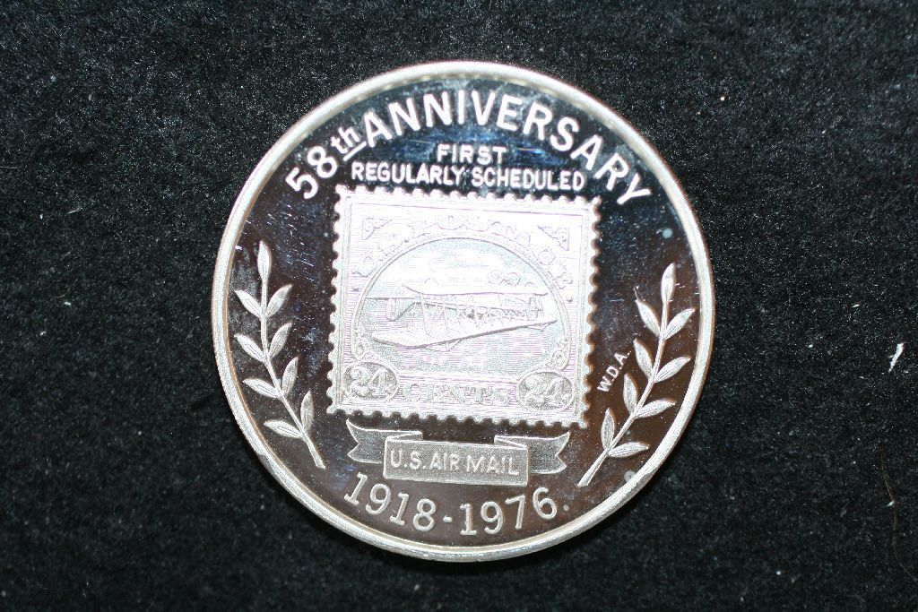1976 US Postal Service Silver Round-58th Anniversary; First Regularly Scheduled US Air Mail