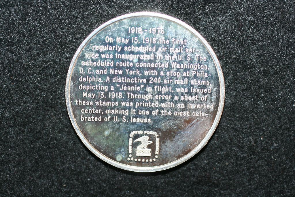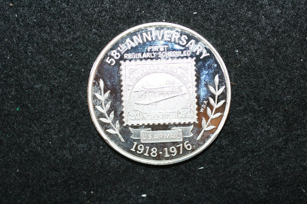 1976 US Postmaster 58th Anniversary First Regulatory Scheduled US Air Mail Silver Round; .999 Fine Silver 1 Oz.