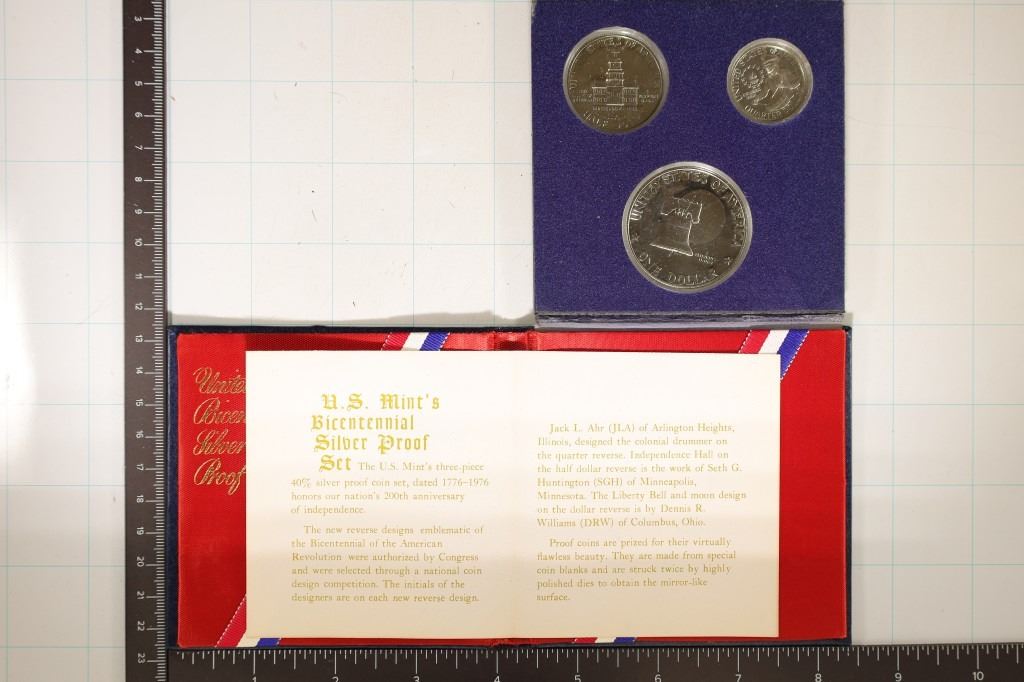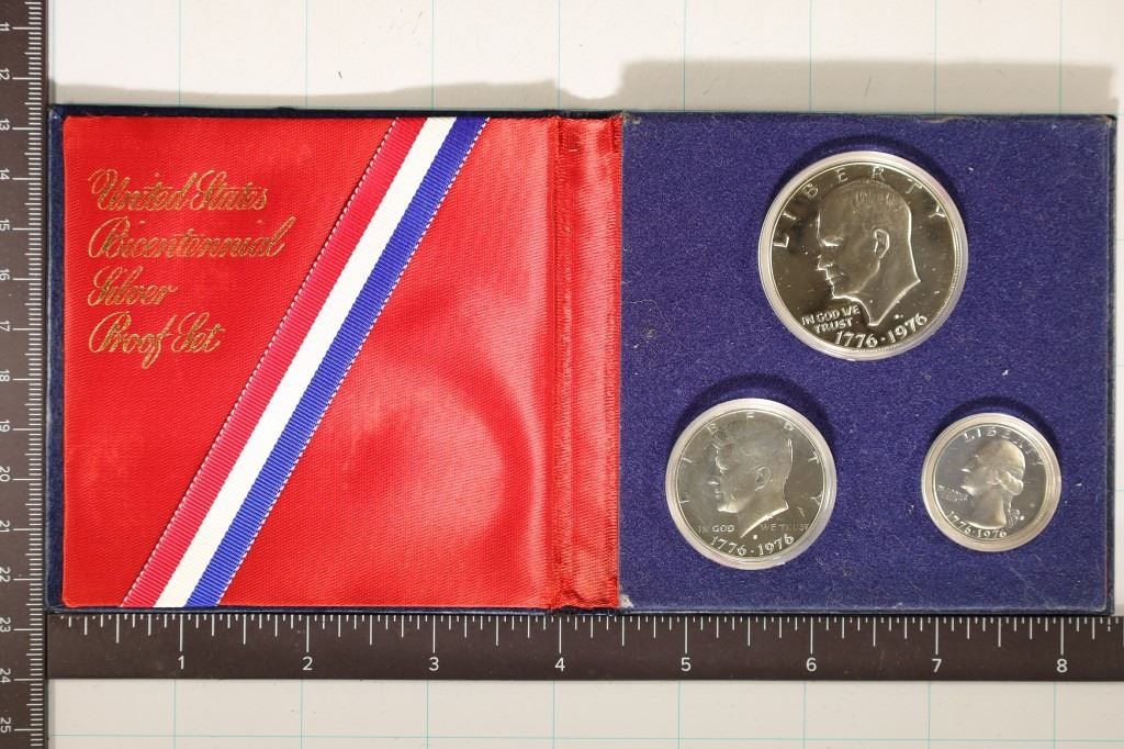 IKE SILVER DOLLAR, SILVER KENNEDY HALF DOLLAR AND WASHINGTON SILVER QUARTER