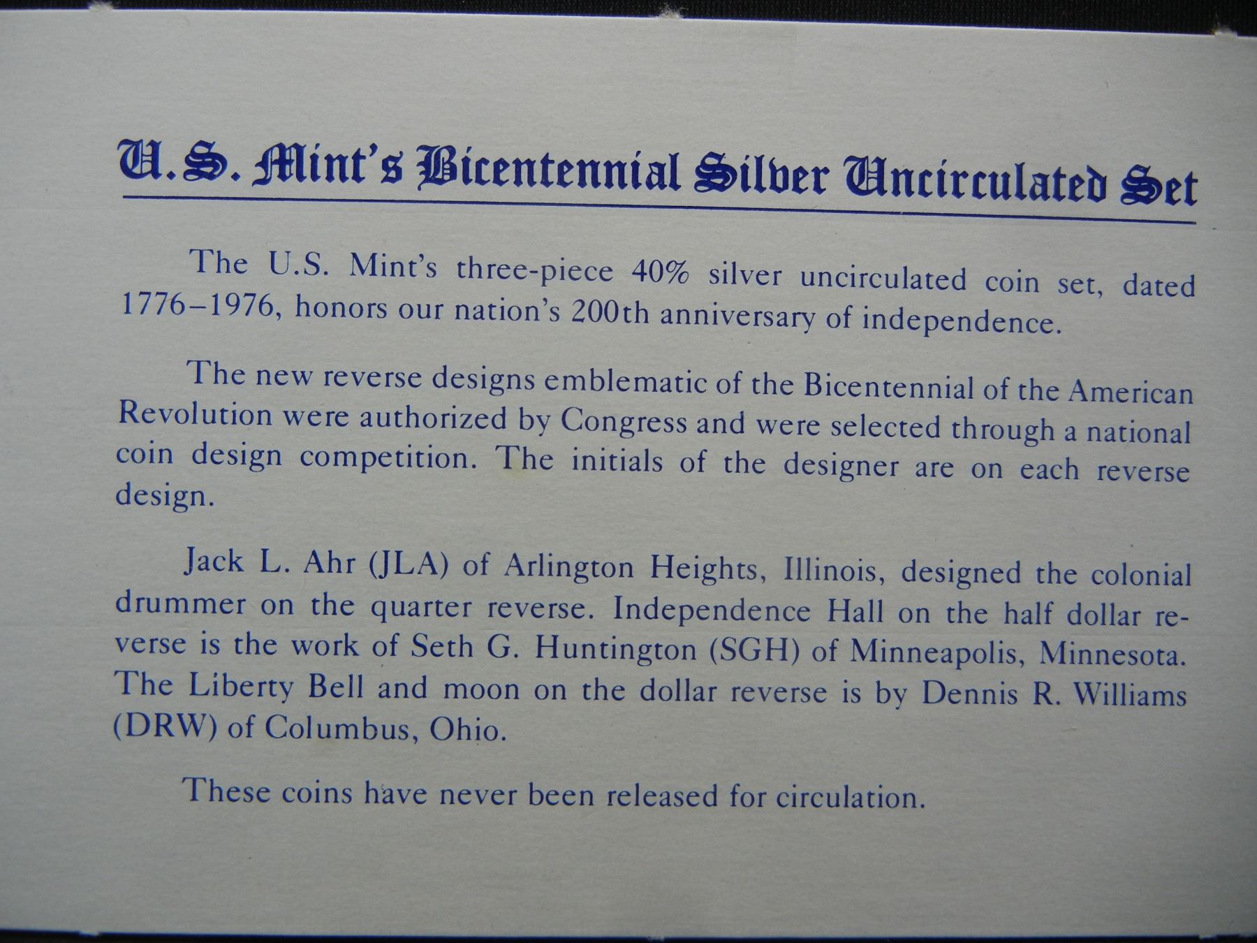 1976 United States Uncirculated 3-Coin 40% Silver Set in Original Packaging