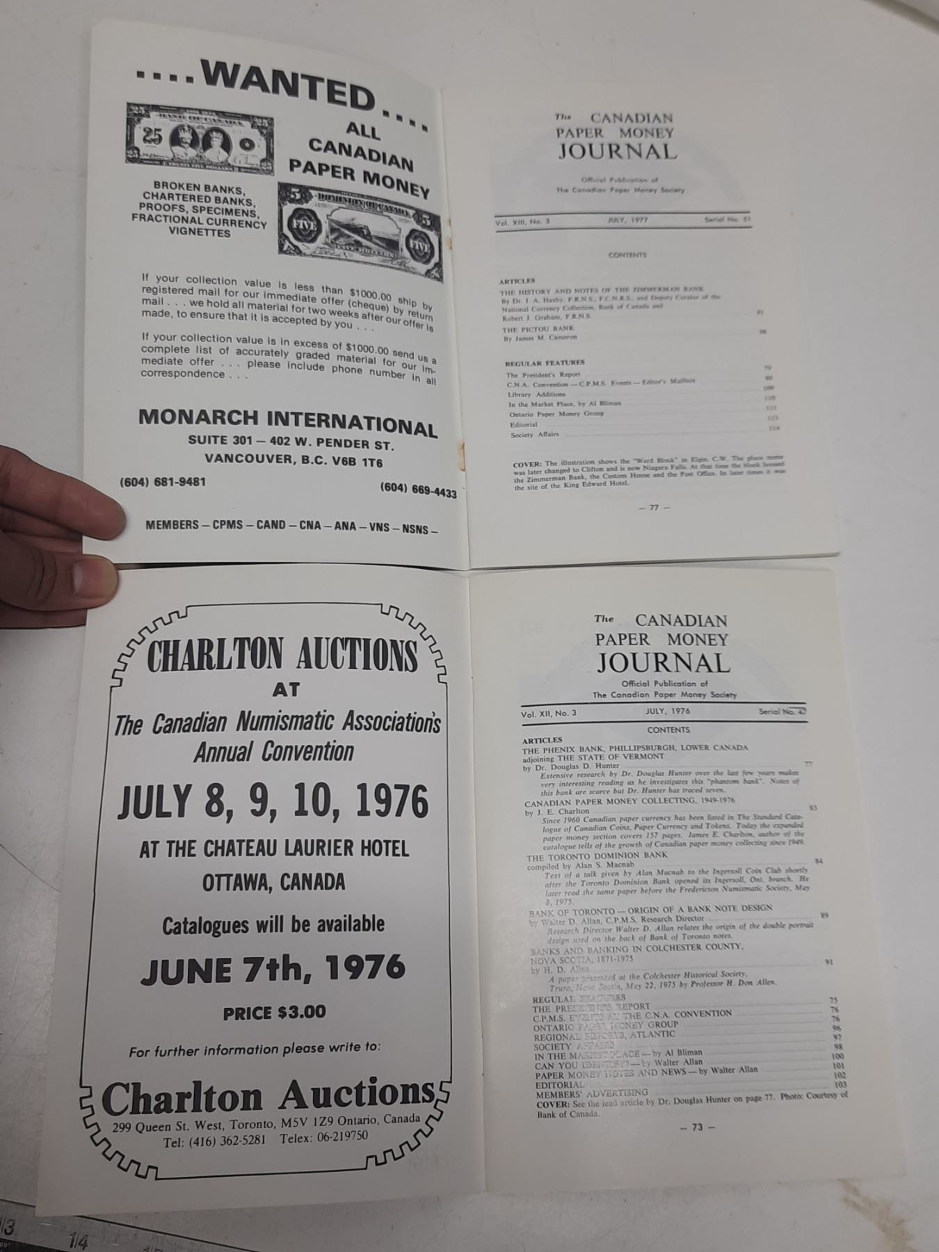 1976 and 1977 Canadian Paper Money Journal.