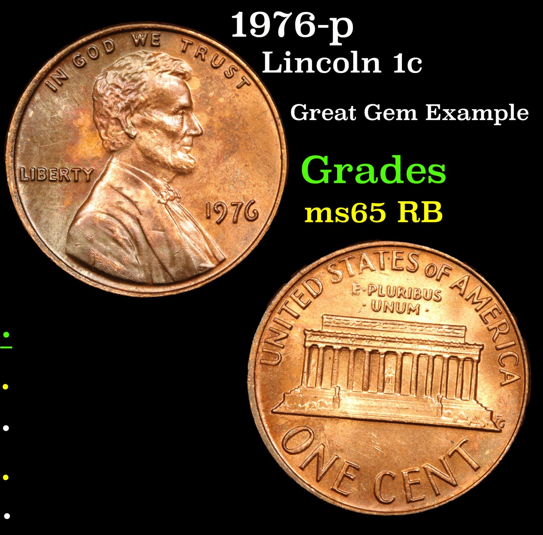 1976-p Lincoln Cent 1c Grades GEM Unc RB. Great Gem Example