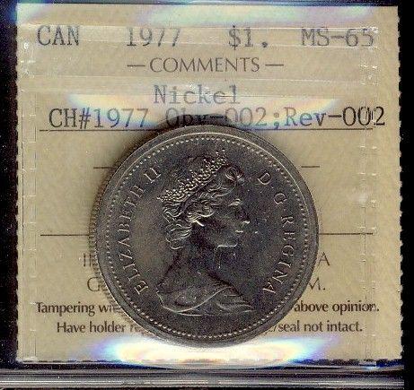 1977 $1 CH#Obv-002, Rev-002 ICCS MS65.