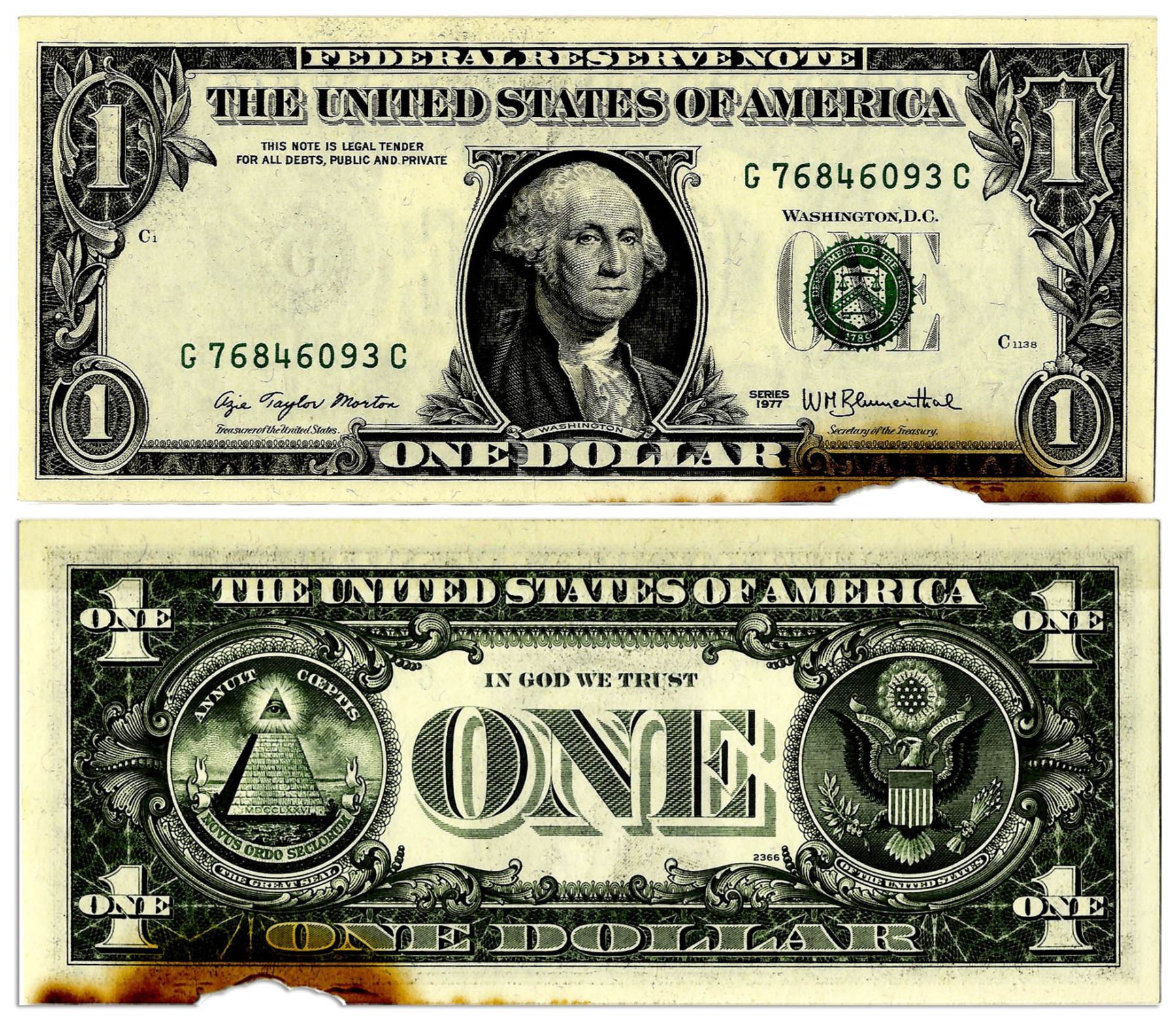 $1 Federal Reserve Error Note -- Series 1977, City of Print Missing -- Insufficient Ink to Front -- Discoloration Along Bottom Edge