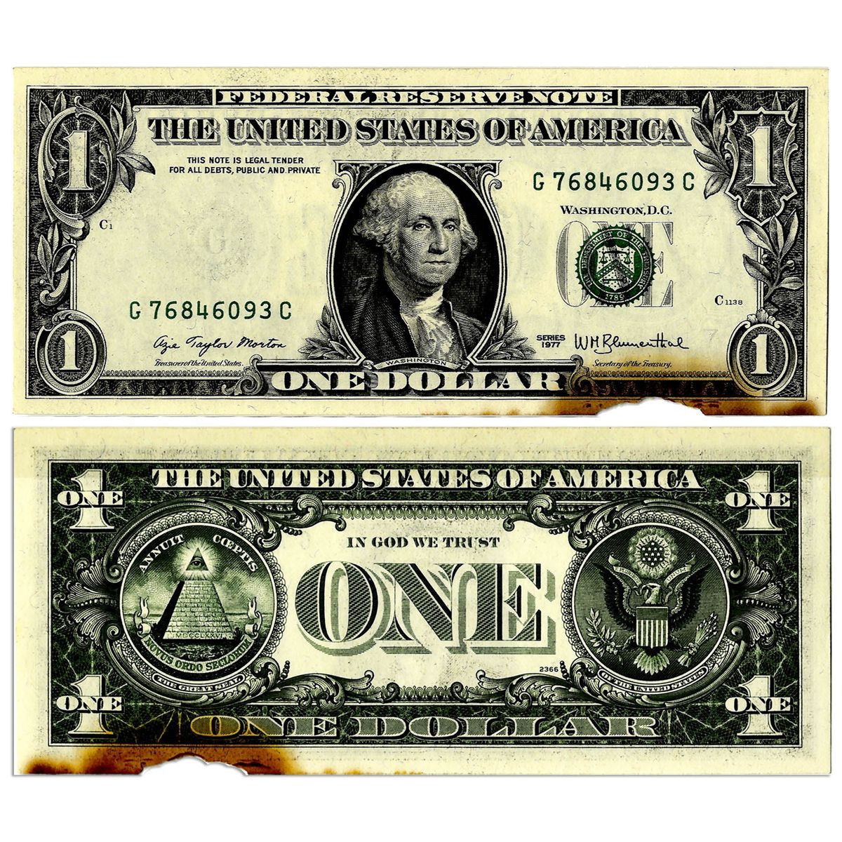 $1 Federal Reserve Error Note -- Series 1977, City of Print Missing -- Insufficient Ink to Front -- Discoloration Along Bottom Edge