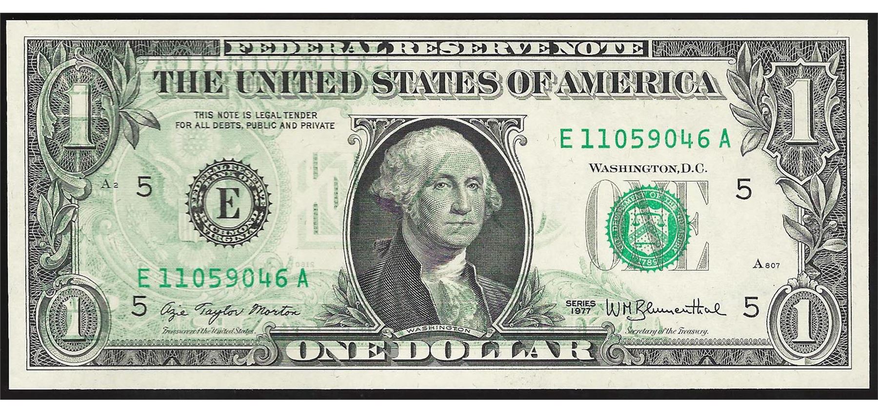 One 1977 $1 Federal Reserve Note ERROR Offset Printing.