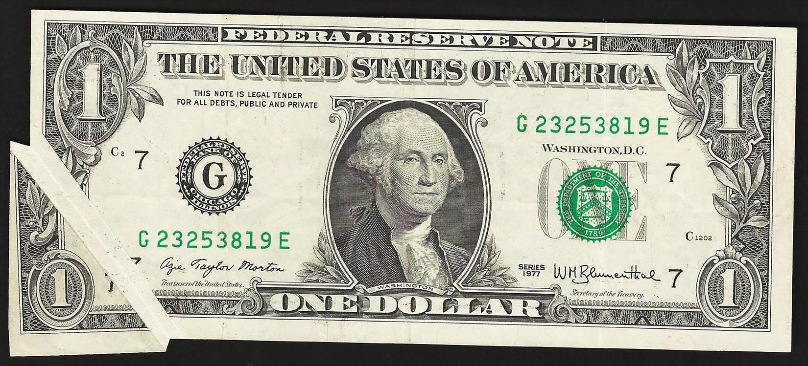 One 1977 $1 Federal Reserve Note Gutter Fold ERROR.